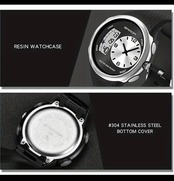 レジン製のケースとステンレススチールのバックカバーが、耐久性とスタイルを兼ね備えています。