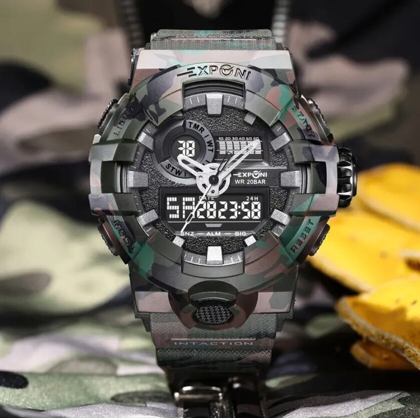 新品のメンズスポーツ迷彩デュアルムーブメントデュアルディスプレイウォッチです。