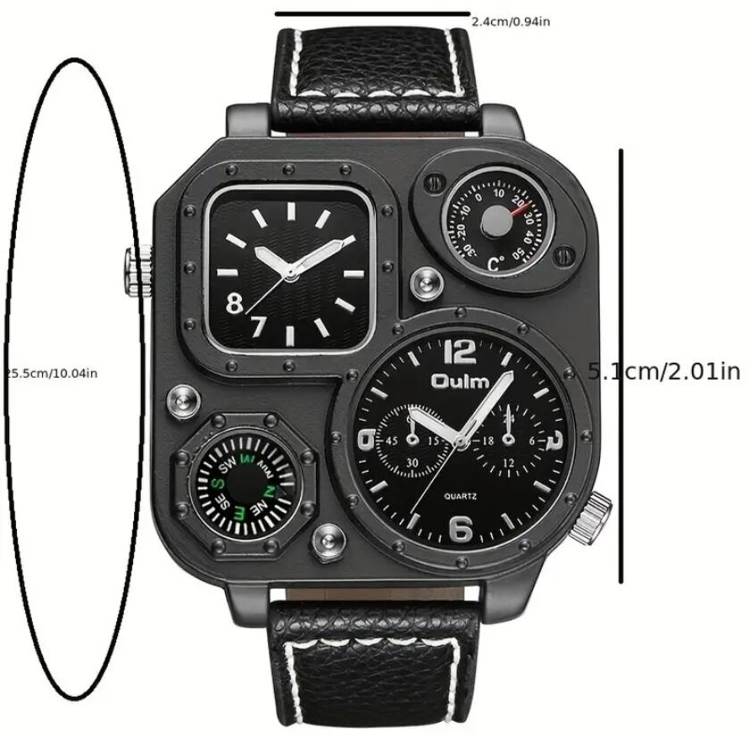 四角いダイヤルには、時間、温度計、コンパス、ストップウォッチなどの多機能が集約されており、日常使いからアウトドアアクティビティまで幅広く活躍します。